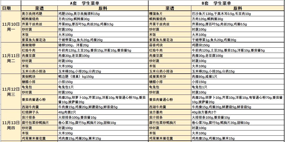 2025学年第一学期学生营养午餐菜单(第十一周)