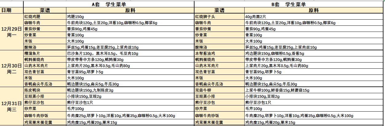 2025学年第一学期学生营养午餐菜单(第十八周)