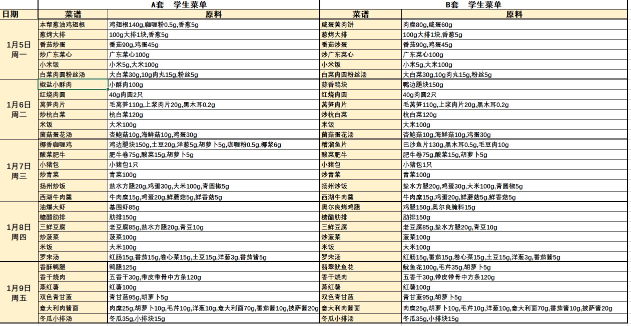 2025学年第一学期学生营养午餐菜单(第十九周)