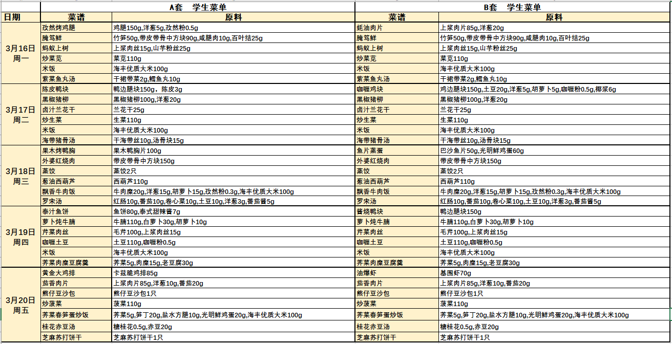 2025学年第二学期学生营养午餐菜单(第三周)