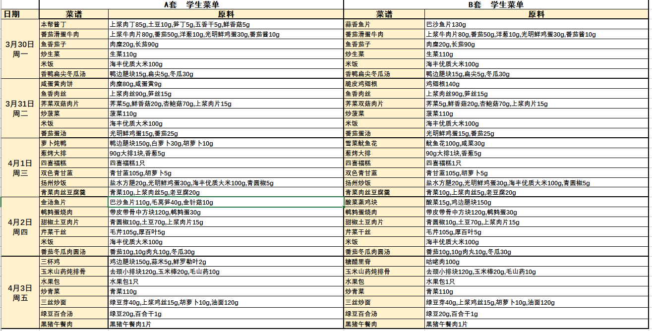 2025学年第二学期学生营养午餐菜单(第五周)