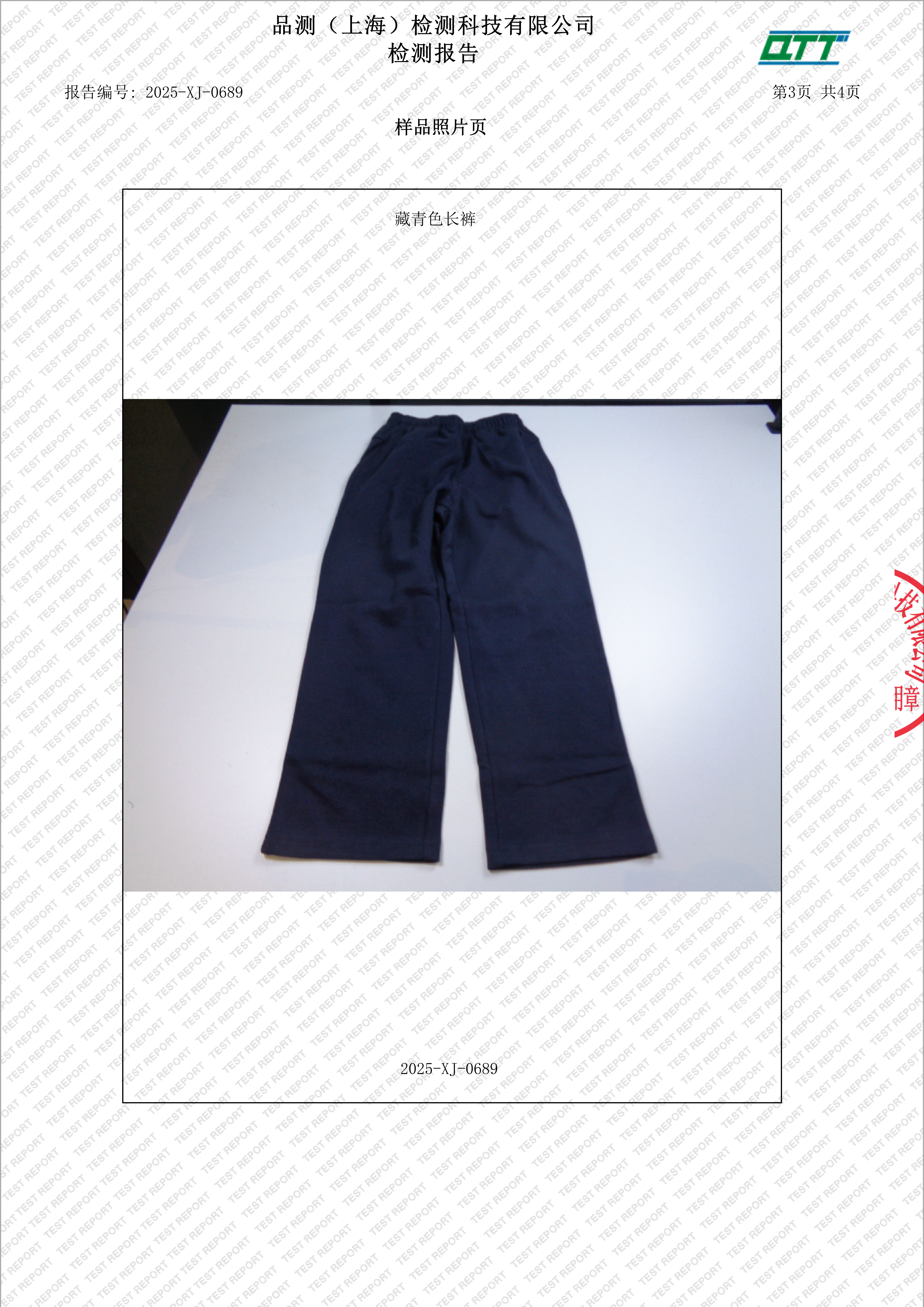 上海市宜川中学附属学校校服二次检验检测报告(春秋运动长裤)