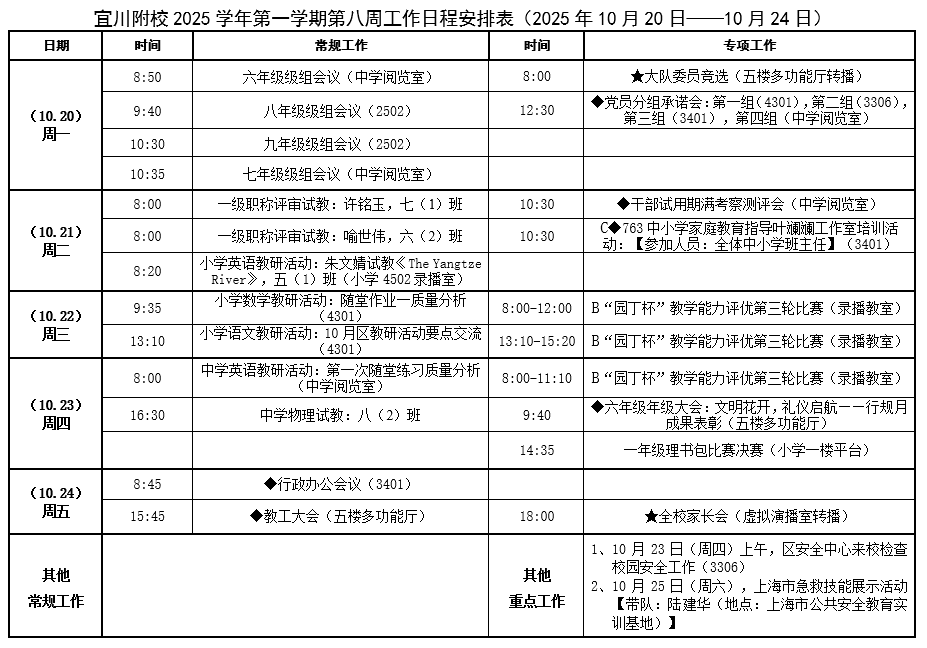 宜川附校2025学年第一学期第八周工作日程安排表
