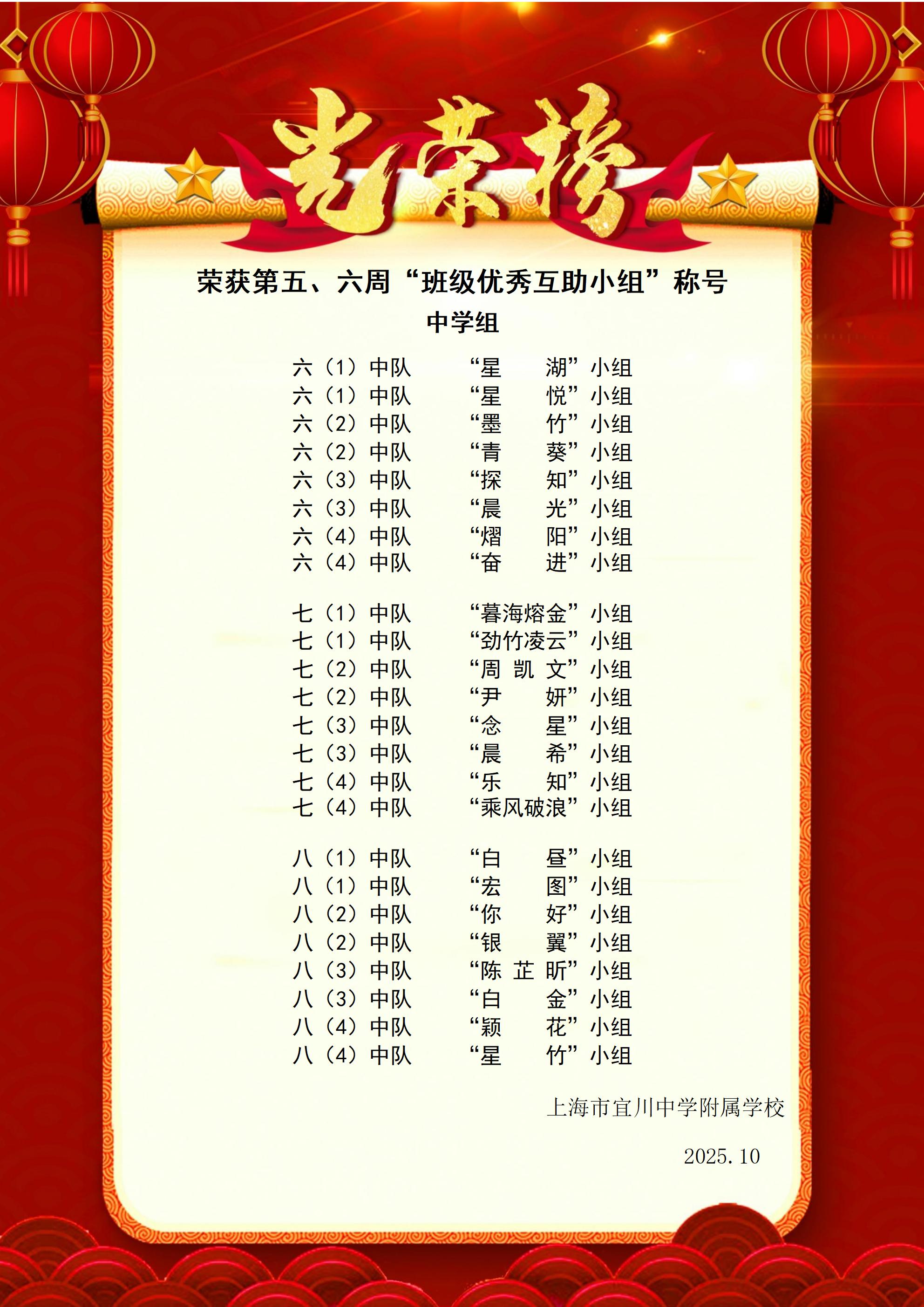 2025学年第一学期荣获第五、六周“班级优秀互助小组”称号名单