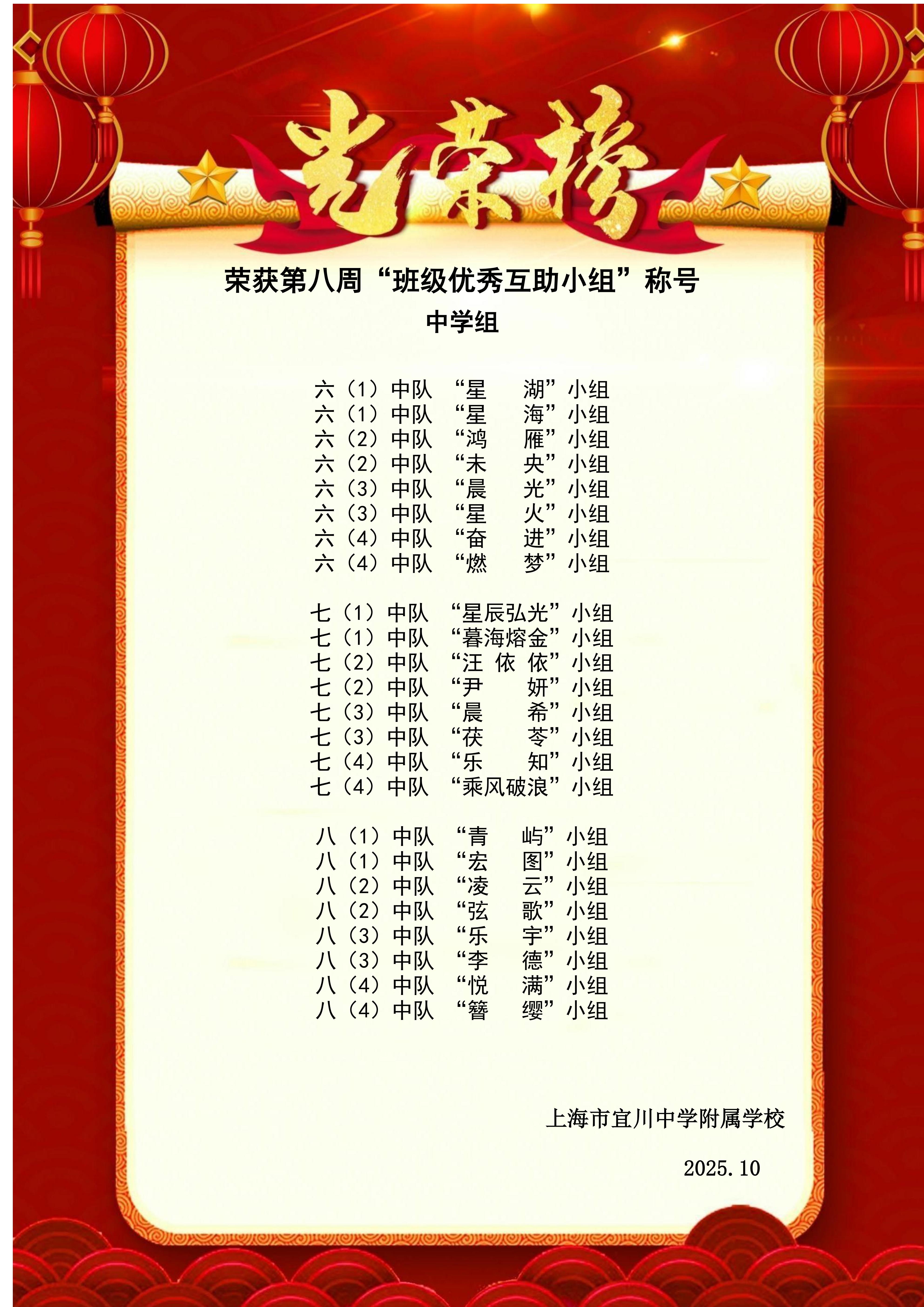 2025学年第一学期荣获第八周“班级优秀互助小组”称号名单